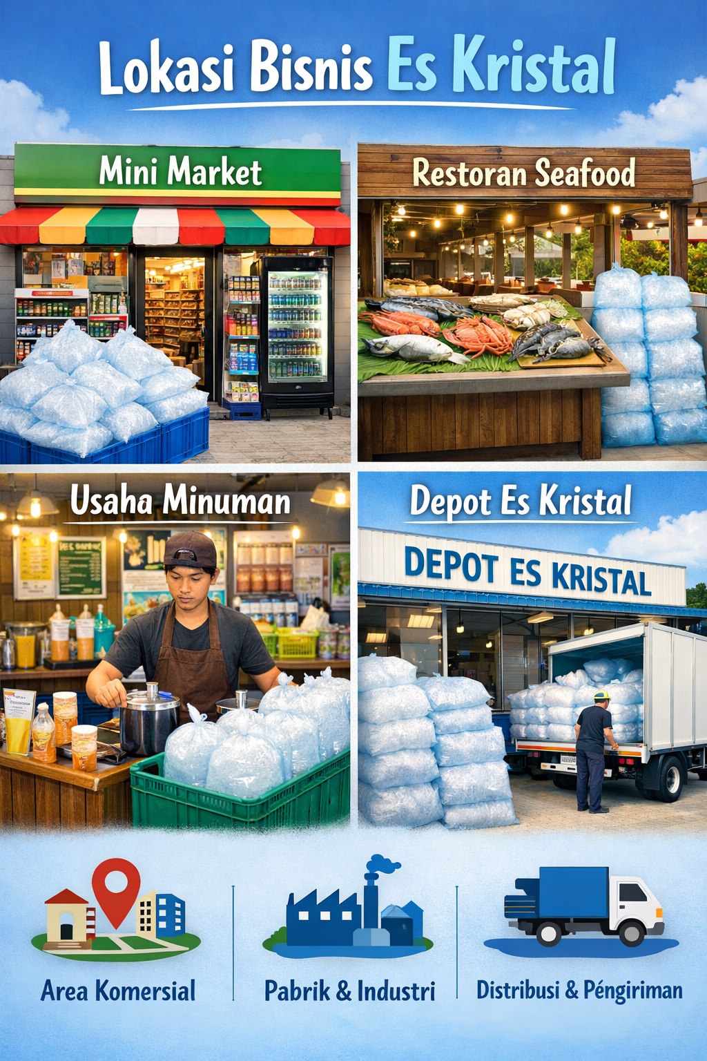 Banyak bisnis es kristal besar berawal dari lokasi kecil yang dikelola dengan strategi tepat.